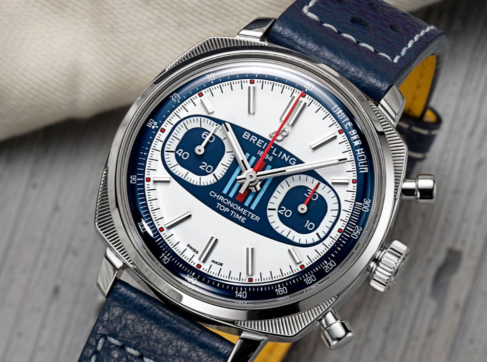 Breitling has just unveiled a trio of limited-edition chronographs in new Top Time Racing and Top Time Martini Racing® chronographs, reviving the era’s most unconventional details in replica Breitling watches for sale: striking cushion case, distinctive “squircle” subdials (not quite square, not quite round), and a distinctive dashboard-style dial that made the originals such coveted collector pieces.